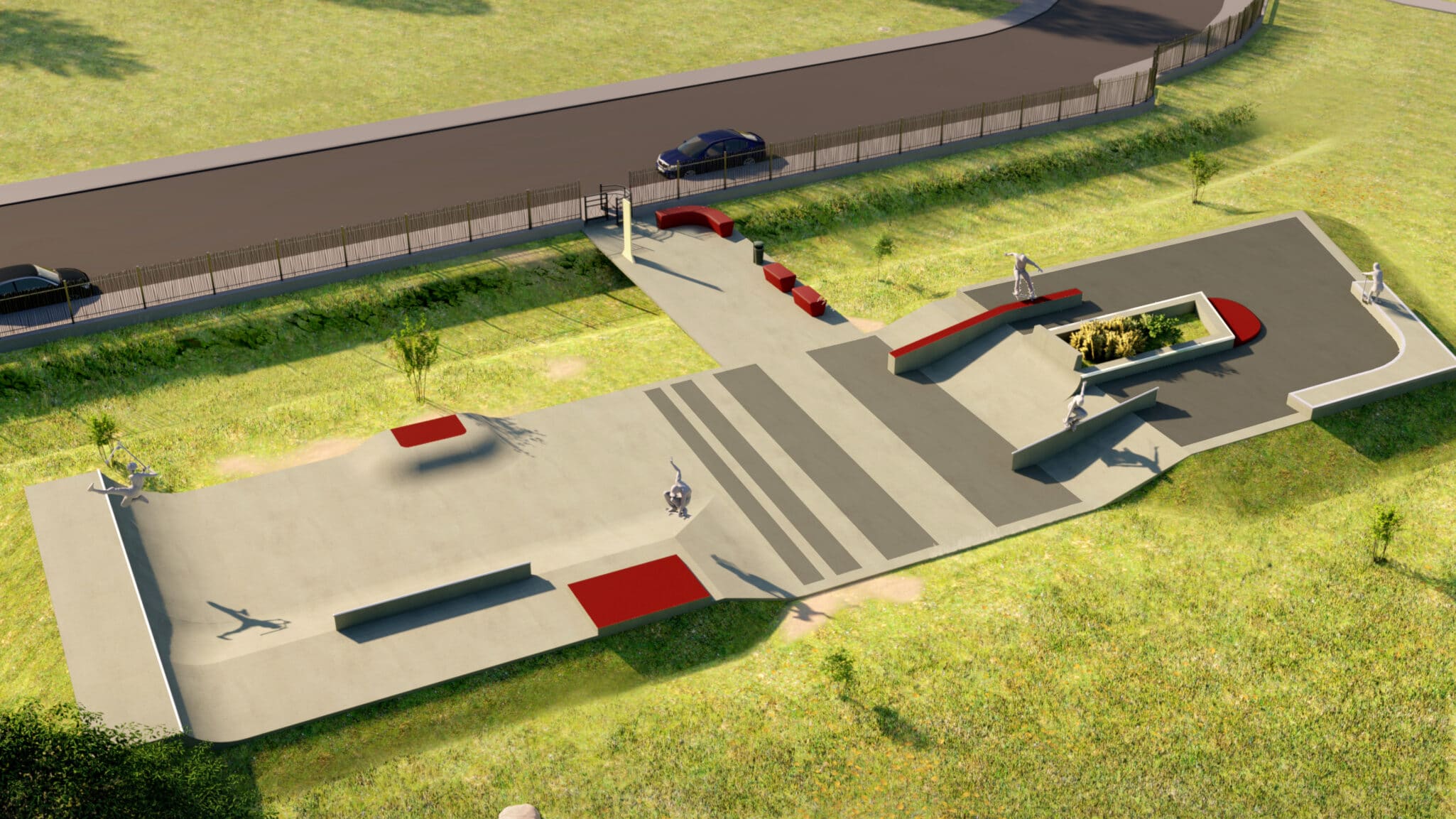 - Conception & maitrise d’oeuvre : Evolving Skatepark (mandataire : Fabien Charlot Paysagiste)